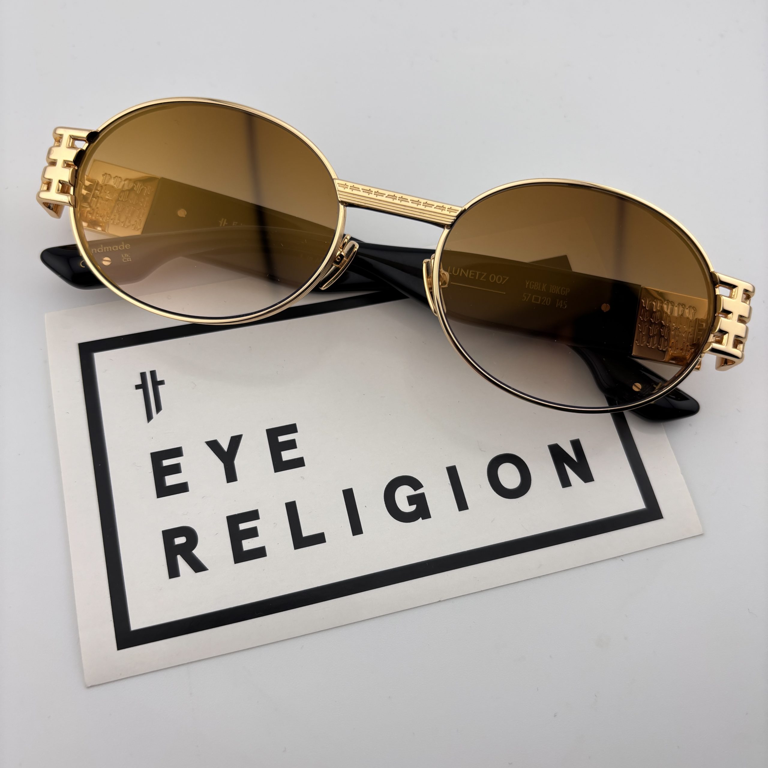 Presenting you the definition of old school elegance with an extra dose of sophistication now in a larger format : the Lunetz 007L. Featuring an iconic oval shape, elevated with a bold signature bridge, intricate monogram-pattern detailing & the famous logo in a elegant logo plaque. This model sets a new standard for refinement. Available in luxurious plated finishes, it seamlessly merges style with substance, offering a shiny boost to your ensemble.